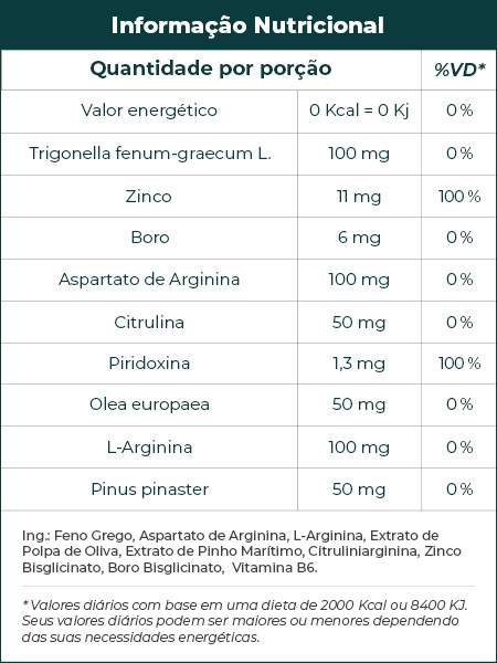 �O Libid Prime promove a saúde dos corpos cavernosos para que sejam mais elásticos e armazenem mais sangue, além de aumentar o fluxo sanguíneo para o pênis. Com isso, você tem ereções mais potentes, duradouras e orgasmos mais fortes. Além disso, o Libid Prime dá energia para aproveitar ao máximo sua nova potência sexual turbinada!